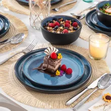 Bring style and sophistication to your table with this 18-Piece Blue Reactive Glaze Stoneware Dinnerware Set. Whether you’re serving a casual breakfast or hosting a dinner party, this versatile and beautifully crafted set is designed to impress. Each piece is finished with a reactive glaze, creating rich, deep tones and unique patterns that make every plate and bowl a work of art. No two pieces are exactly the same—your set will be uniquely yours.
