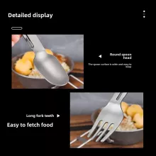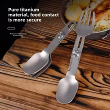 Crafted from high-quality titanium alloy with stainless steel components, this spork offers unbeatable strength without adding bulk to your pack. Measuring approximately 5.1 to 7.2 inches in length, it folds down compactly to save space and slides easily into your pocket, pouch, or mess kit. With a fork on one end and a spoon on the other, it handles all types of meals—soups, pasta, rice, or even campsite grilling—with ease.
