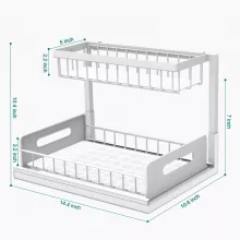 Revolutionize your storage game with this 2-tier under sink organizer. Designed to make the most of limited space, it fits perfectly under cabinets in your kitchen or bathroom. Its sliding drawer system offers easy access to everything you need, helping you transform cluttered spaces into organized havens. With its sleek, modern design and adjustable features, this organizer is perfect for anyone looking to upgrade their home organization.