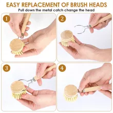 - Set includes: 1 wooden dish brush and 4 interchangeable brush heads