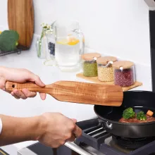 Each spatula showcases the original wood grain of acacia – a smooth, natural finish that makes every piece unique. The sleek edge of the shovel is finely polished for a soft, comfortable grip, making it feel as good in your hand as it looks in your utensil holder. Whether you’re whipping up breakfast or preparing dinner for guests, this tool blends rustic charm with practical function.