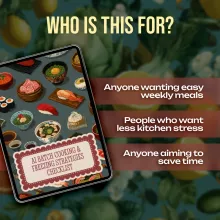 This digital checklist is perfect for busy professionals, parents juggling schedules, students on a budget, and anyone who loves the idea of simplifying mealtime while enjoying homemade meals. If you’ve ever wished for a system that combines meal prep with smart AI tools, this is for you.