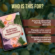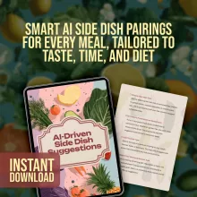 Take the guesswork out of meal planning with the AI-Driven Side Dish Suggestions checklist. This easy-to-use digital download is your secret weapon for creating perfectly balanced meals every time. Whether you’re preparing a quick weeknight dinner or planning an elaborate gathering, this guide uses ai to suggest side dishes automatically—helping you pair your main course with sides that fit your style, time, and taste preferences. Think of it as your personal kitchen assistant, saving you time while making your meals unforgettable.