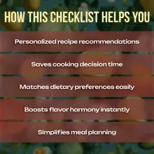 This checklist is perfect for busy home cooks, foodies who love experimenting, or anyone looking to elevate everyday meals with minimal effort. If you want to spend less time worrying about what to serve and more time enjoying the food, this is for you.