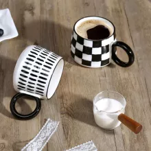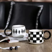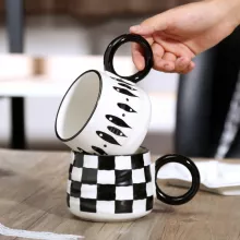 This ceramic coffee cup features a classic black and white chessboard pattern that blends effortlessly into modern or minimalist home décor. Its comfortable handgrip provides a secure and cozy hold, making it perfect for lattes, cappuccinos, hot chocolate, or a simple tea break. The mug holds just the right amount of your favorite beverage, making it ideal for relaxed mornings, casual brunches, or winding down in the evening with your favorite brew.
