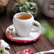 Red Mushroom Coffee Cup and Saucer Set. This enchanting set combines fun design with practicality, making your everyday beverages feel special. With adorable mushroom motifs and exquisite ceramic craftsmanship, this cup set is perfect for adding a whimsical touch to your kitchen or dining table.
