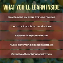 This eBook is perfect for food lovers, home cooks, and anyone curious about authentic Chinese cuisine. Whether you’re planning a cozy night in, learning a new skill, or hosting a festive dinner, you’ll find everything you need to succeed. What makes this resource stand out is its unique mix of traditional Chinese food recipes and modern AI-powered cooking hacks you won’t find elsewhere.