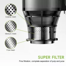 Unlike traditional juicers, this slow masticating juicer preserves more nutrients and delivers a higher juice yield with every use. Its advanced triple filter system—featuring 2mm, 0.8mm, and 0.5mm mesh—ensures smoother juice, less pulp, and purer flavor. Made from safe BPA-free materials, it provides peace of mind while letting you indulge in vibrant, healthy drinks every day.
