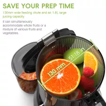 - Save Time: Extra-wide chute reduces prep work by fitting whole fruits and vegetables.