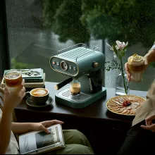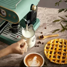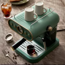 The espresso maker's retro design and color are absolutely stunning. As a first-time owner, the manual was incredibly helpful, offering clear instructions and useful illustrations for easy operation. Its simplicity in both use and cleanup has exceeded my expectations, making it an ideal choice for any home. This machine has revolutionized my coffee routine! Producing rich, aromatic espresso with ease and a steam wand that froths milk to perfection, it's a dream come true for coffee lovers. Its compact size is a big plus, fitting snugly in my kitchen. Truly, a small gadget that delivers big on taste.