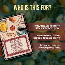 Stop guessing which cookware is worth your investment. With this Cookware Materials Comparison Checklist, you’ll confidently choose pieces that last, perform beautifully, and match your cooking needs. Download your copy today and start building the perfect cookware collection for your kitchen.