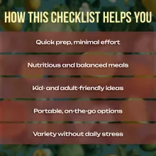Make lunchtime simple, creative, and fun. Download the Creative and Easy Lunchbox Ideas for Every Day checklist today and start enjoying stress-free, healthy meals all week long. Your lunchbox routine just got a whole lot easier!