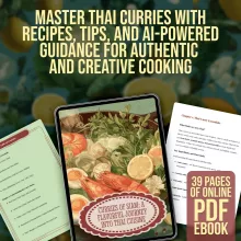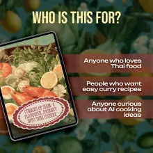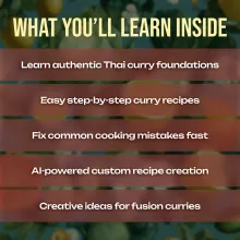 Unlike generic cookbooks, this eBook combines traditional Thai expertise with modern AI-powered assistance, ensuring that you not only follow recipes but also learn to experiment, troubleshoot, and personalize curries to your taste. It’s more than just a recipe collection—it’s a complete learning journey into the world of Thai food recipes curries.