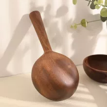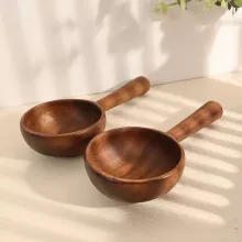 Handmade from smooth, solid wood, this set of chunky yet lightweight utensils brings warmth and elegance to any table setting. Each spoon, fork, and bowl showcases the natural wood grain, making every piece unique. The solid pattern and polished surface make them both eye-catching and easy to clean. Compact enough for your backpack, yet sturdy enough for daily use, these utensils fit right into modern eco-conscious lifestyles.