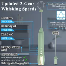 This milk frother is designed for effortless use and professional results at home. The high-speed motor offers three customizable speed settings—6000, 7000, and 8000 RPM—giving you full control over the consistency of your foam or blend. With a built-in rechargeable battery and included USB-C cable, you’ll never fumble for batteries again. It also comes with two interchangeable stainless steel whisks: one for drinks and one for egg beating or light mixing.