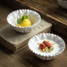 Elegant Ceramic Flower Shaped Bowl with Ruffled Edge