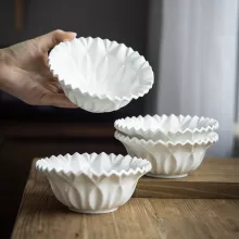This bowl is crafted from high-quality, eco-friendly ceramic with a smooth, solid glaze finish. The unique irregular flower shape gives it a sculptural, hand-crafted look, while the embossed texture brings subtle sophistication to your dining table. Lightweight yet sturdy, it blends artistry with practicality—perfect for both special occasions and everyday meals.