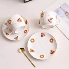 Enjoy your morning coffee or afternoon tea in style with this exquisite European porcelain coffee mug and saucer set. Crafted with care, this creative donut-shaped mug adds a touch of elegance to any table setting. Its smooth handgrip design makes it comfortable to hold, while the matching saucer brings an extra layer of charm and convenience. Perfect for coffee, tea, or even hot chocolate, this set is ideal for anyone who loves to combine practicality with beauty.