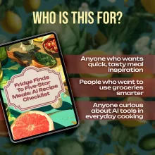 This guide is ideal for home cooks, students, busy professionals, or anyone who wants to eat better without spending hours planning. If you’re curious about AI, love experimenting in the kitchen, or want an easy system to make the most of your groceries, this checklist is made for you.