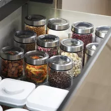 - Clear Glass Design: Instantly see what’s inside – no more guesswork or messy labels
