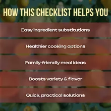 Make gluten-free cooking simple, delicious, and fun. Download your copy of the Gluten-Free Recipe Swaps checklist now and transform your kitchen with easy swaps that work every time!