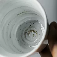 Crafted from premium ceramic porcelain, each cup boasts a smooth texture and natural glaze, giving it a classic yet unique appearance. The subtly curved form and generous size make it comfortable to hold and sip from. Its handmade character ensures that no two cups are exactly alike — a true mark of authentic craftsmanship.