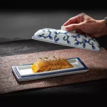 Crafted from premium porcelain and finished with underglaze color techniques, this sashimi plate is more than just tableware—it’s a visual statement. The subtle textures and understated design echo traditional Japanese craftsmanship, while the rectangular shape creates a clean canvas for creative dishes. The ceramic material is durable and non-toxic, making it ideal for both professional and everyday use.