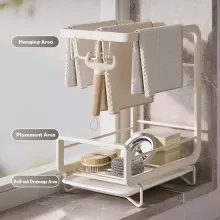 Say goodbye to countertop clutter and hello to a neat, organized kitchen with this Kitchen Sink Sponge Holder with Dishcloth Drying Rack. Designed to simplify your daily kitchen routine, this versatile organizer helps keep your sponges, dishcloths, and small kitchen items easily accessible while maximizing space. Whether you place it on your countertop or mount it to the wall, this holder is an essential addition to any modern kitchen.