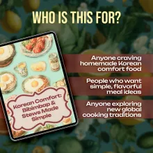 This eBook is perfect for home cooks curious about Korean food, busy professionals looking for nutritious meals, and food lovers eager to bring the flavors of bibimbap and stews into their weekly routines. If you’ve ever wanted a simple yet comprehensive resource for Korean comfort food, this is the guide for you.