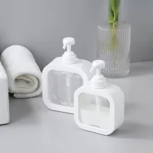 Its sleek, white design adds a modern touch to any space, whether in your bathroom, kitchen, or even in a hotel room during your travels. The transparent body not only looks elegant but also helps you easily monitor how much product you have left. The simple hydraulic press system makes dispensing liquid both quick and hygienic, eliminating spills and waste. Enjoy the comfort of always having your essentials within arm’s reach, no matter where you are.