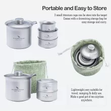 Take your tea ritual to the next level, no matter where you are. This lightweight titanium travel tea set is your perfect companion for outdoor adventures, hiking trips, or peaceful moments at a campsite. Designed for convenience and built to last, this compact tea maker and double-layer teacup combo delivers rich, flavorful brews even in the heart of nature.