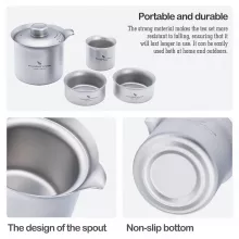 Use it while camping, traveling, backpacking, or even at the office—this tea set adapts to every lifestyle. The double-layer teacup offers excellent insulation, keeping your tea warm without burning your hands. Since titanium holds boiling water without reacting, you can steep tea leaves directly in the pot and enjoy hassle-free cleanup afterwards. It’s simple, elegant, and ready to go wherever you are.