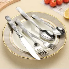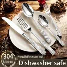 The set is available in different configurations—choose from 1, 4, or 6 complete sets depending on your needs. Each set includes a knife, fork, spoon, teaspoon, and cake fork, offering everything you need for both everyday meals and formal occasions. With its mirror-polished finish and balanced weight, every piece delivers a satisfying grip and a stylish gleam that enhances your table setting.