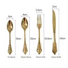 Transform your everyday meals into extraordinary dining moments with the Luxury Vintage Gold Plated Cutlery Set. Add a golden touch of sophistication to your table and impress your guests with timeless style. Order now and bring elegance to every bite.