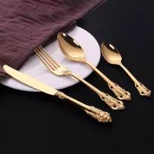 Each piece is meticulously polished with advanced mirror technology, ensuring a smooth, flawless surface that’s as easy to clean as it is stunning to display. The engraved details highlight the set’s vintage western inspiration, blending traditional style with modern luxury. With a solid stainless steel construction, these utensils are not only resistant to rust and tarnish but also designed to retain their golden brilliance for years to come.