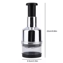Crafted with high-quality stainless steel blades and a durable plastic build, this chopper is built to last. The sharp rotating blades deliver fast, even cuts every time you press, making it easy to mince garlic, onions, chilies, or herbs without tearing up or making a mess. Its compact size (8.66 inches tall and 3.35 inches in diameter) makes it perfect for any kitchen—big or small.