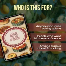 Quiche is the ultimate dish that blends comfort, elegance, and versatility—and now you can master it with ease. Master the Art of Quiche is a beautifully designed digital guide that walks you through everything you need to know to create flawless, mouthwatering quiches at home. Whether you’re a beginner who wants to try baking for the first time or a seasoned cook looking to refine your technique, this guide delivers simple instructions, expert tips, and even insights into how modern AI tools can help you perfect your results.
