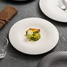 Perfect for commercial hotels, upscale restaurants, or home kitchens with a refined taste, this tableware collection merges form and function. Each piece features a smooth, solid color glaze and a subtle spiral design, creating a minimalist yet eye-catching look. The irregular round shape offers a break from traditional symmetry, making each dish feel like a handcrafted work of art.