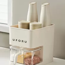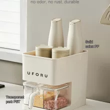 This kitchen organizer combines essential storage components into one smart unit. Made of durable plastic, it’s lightweight yet sturdy, easy to clean, and ideal for daily use. It features dedicated compartments for chopsticks, cutlery, and spice bottles — all in one accessible and space-saving design. Plus, it comes with user-friendly DIY components and stickers, making assembly simple and customization fun.