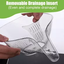 This strainer bowl features a sleek, deep design with a honeycomb pattern of fine drainage holes, allowing water to flow quickly while keeping your food safe and clean. The flat, stable base prevents slipping and tipping, while the long spout ensures mess-free drainage. Made of durable ABS plastic, it’s lightweight yet sturdy enough for daily use. The removable inner filter lets you lift, rinse, and serve with ease—and makes cleaning a breeze.