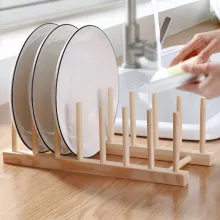 Transform your kitchen into a clutter-free haven with the Multifunctional Wooden Plate Storage Rack. This thoughtfully designed storage solution offers an elegant and efficient way to store your kitchen essentials. With its sturdy construction and sleek design, this rack will not only help organize your space but also add a natural charm to your kitchen décor. Whether you need a place for your plates, pots, lids, or drying cups, this rack is perfect for all your needs.