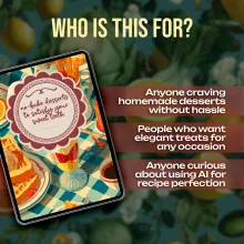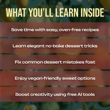 This digital guide is ideal for home bakers, foodies, parents, or anyone who wants to enjoy the magic of no-bake desserts without complicated steps. Unlike other eBooks, it combines easy recipes with expert tips and even introduces the power of AI to help you perfect your creations—making it a truly unique resource for dessert lovers everywhere.