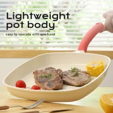 Bring the taste of outdoor grilling into your kitchen with this 28cm Nonstick Grill Pan. Perfectly sized for your stovetop, this square grill pan is designed to deliver rich, chargrilled flavor without stepping outside. Whether you’re craving juicy steaks, grilled veggies, or crispy bacon, this pan does it all with ease. Built from premium aluminum alloy with a nonstick granite coating, it ensures effortless food release and even heat distribution for perfect sears every time.
