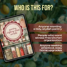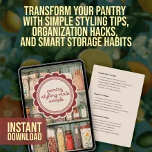 Ready to enjoy a pantry that’s neat, functional, and beautiful? Download Pantry Styling Made Simple today and take the first step toward creating the kitchen space you’ve always wanted.