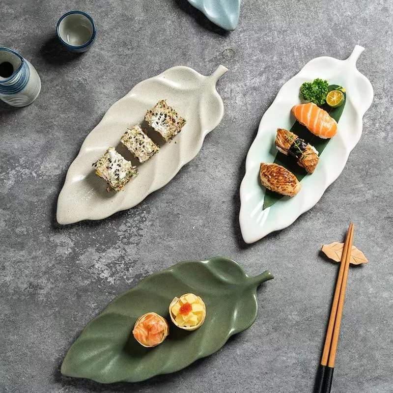 Ceramic Japanese Leaf Plate – Retro Style Dim Sum Snack Plate for Small Gatherings