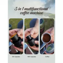 This portable espresso maker stands out with its user-friendly design and versatility. Whether you’re a fan of Nespresso or Dolce Gusto capsules or prefer the traditional taste of ground coffee, this machine has got you covered. The simple, intuitive operation means you can brew your coffee effortlessly, making it an excellent choice for both beginners and seasoned coffee lovers. What makes this espresso maker truly special is its portability and ease of use. The compact design allows it to fit snugly in your car’s cup holder, backpack, or kitchen counter, ensuring you never have to compromise on your coffee experience, no matter where you are.