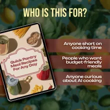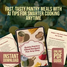 Unlike other recipe eBooks, this guide combines quick pantry meal recipes with smart AI tools, helping you adapt to any dietary needs, substitute ingredients on the fly, and make cooking more enjoyable. It’s more than a cookbook—it’s a practical system that teaches you how to stock your pantry wisely, avoid common mistakes, and create flavorful meals even on your busiest days.
