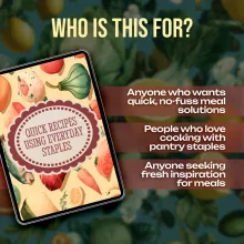 Looking for delicious meals you can whip up in minutes without a last-minute grocery run? Quick Recipes Using Everyday Staples is your go-to digital guide filled with smart, simple, and creative recipes you can make with ingredients you already have in your pantry. Designed to save you time, money, and stress, this guide proves that fast, flavorful cooking is always within reach when you know how to stock and use your kitchen essentials. Whether you’re a busy parent, student, or anyone craving quick recipes using pantry staples, this eBook is made for you.