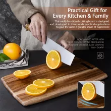 - **Premium Material**: Made from 100% natural acacia wood, known for its durability and resistance to moisture, making it ideal for cutting, slicing, and food preparation.