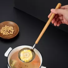 - Comfortable Wooden Handle: The wooden handle offers a comfortable, ergonomic grip, providing you with better control while straining or serving food.